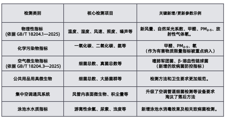 公共场所的卫生安全是健康中国的基石。欣和检测始终站在标准.前沿,我们已完成对 《公共场所卫生检验方法》系列国家标准(GB/T 18204—2025) 的全面能力建设。自2025年12月1日起,我们将依据这套.新国标,为您提供更全面、更先进的检测服务。