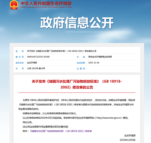 污水处理厂监管进入“双轨时代”,您的排放达标准备好了吗?一项将改变城镇污水处理厂日常运营与监管方式的新规,即将在明年3月1日正式生效。2025年11月,生态环境部发布了《城镇污水处理厂污染物排放标准》(GB 18918-2002)的第1号修改单。这一自2026年3月1日起实施的修订文件,核心创新在于..建立了 “日均值+瞬时值”双轨监测评价体系,标志着我国城镇污水处理监管从“结果导向”迈向 “过程与结果并重” 的精细化管理新阶段。